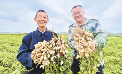 近日,莒南縣永森農(nóng)機(jī)化種植專業(yè)合作社內(nèi)的花生喜獲豐收。據(jù)合作社負(fù)責(zé)人王見平(右)介紹,莒南花生品質(zhì)好、單產(chǎn)高、營(yíng)養(yǎng)豐富。圖為9月20日,王見平和社員捧著剛剛收獲的花生喜笑顏開。
